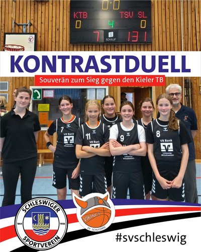 In der Landesliga-Partie der U16-Mädchen zwischen dem Kieler TB und den Schleswig ViQueens setzten sich die Gäste vom SV Schleswig am Wochenende klar mit 131:7 durch. Das Ergebnis spiegelte vor allem die unterschiedlichen Erfahrungsstände der beiden Mannschaften wider.