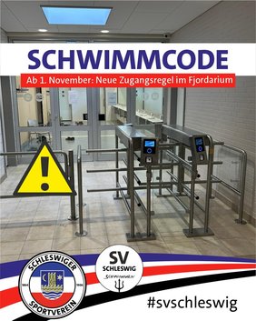 Der Zugang zum Fjordarium ist ab diesem Datum nur noch über einen persönlichen QR-Code möglich. Die erforderlichen QR-Codes werden in den kommenden Tagen generiert und per E-Mail an alle Kursteilnehmerinnen und Kursteilnehmer bzw. Mitglieder des SV Schleswig versendet. Dieser Code ist einmal täglich während der Schwimmzeiten des Vereins nutzbar und gilt ausschließlich für die registrierte Person.